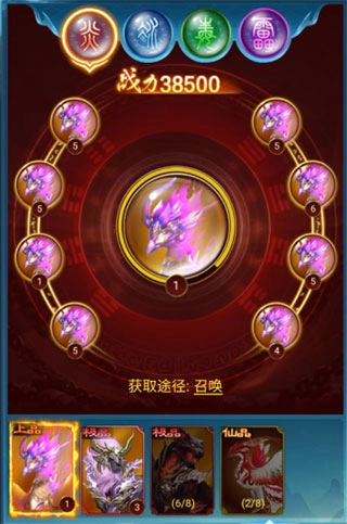 游戏里的御魂同样包含四种属性,即炎、冰、毒、雷,每种属性依据品质还能划分为上品、极品、仙品与神品,玩家能够借助激活和进阶御魂来增强战力,而御魂则可以通过召唤、开启秘宝、宗门祭坛、奇遇等途径获取。