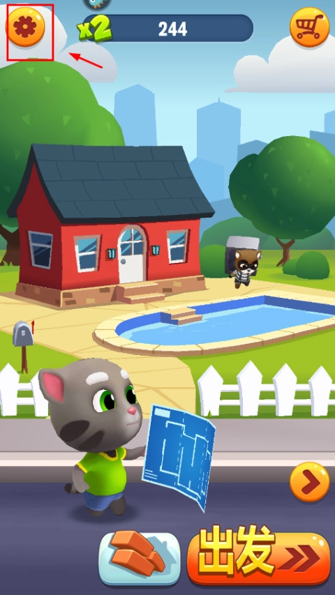 打开汤姆猫跑酷游戏,进入游戏界面后,点击左上角的设置按钮。