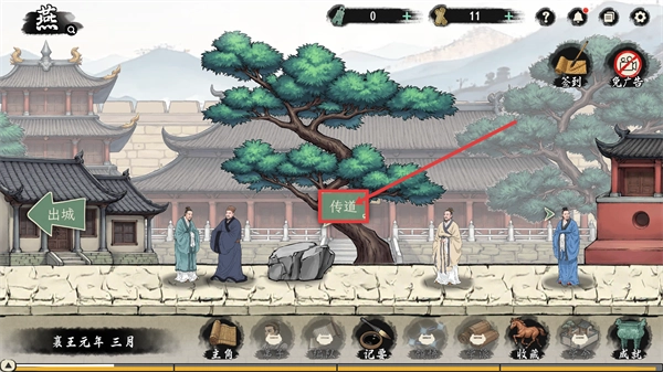 在游戏主界面点击【传道】选项即可开启对应的玩法,另外还能借助【签到】功能获取资源,从而帮助推进游戏内的进程。