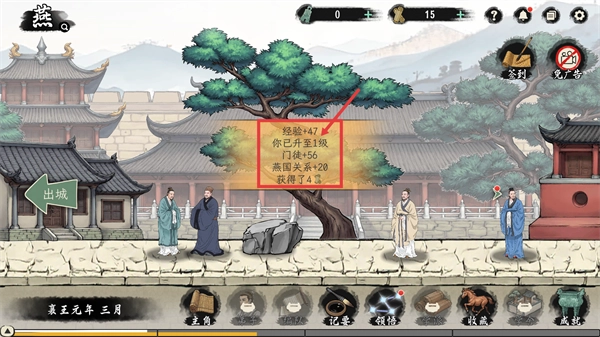 完成玩法后,你可以得到【经验+47】【门徒+56】之类的奖励,还能够增进【燕国关系】,与此同时积累资源来开启更多内容。