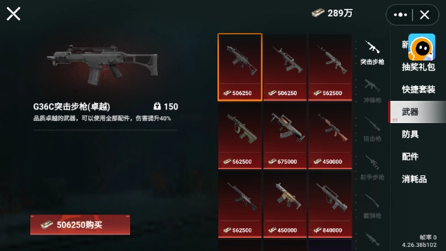 2. 选择需要的武器。