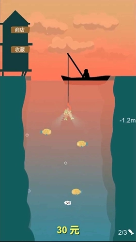 1、用力甩钓竿,就会让鱼钩进入到深海世界中,在海底获得更多种类的鱼儿来售卖。