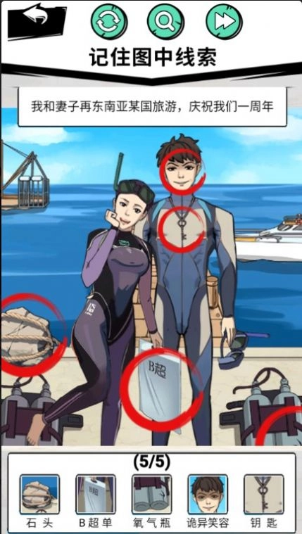 玩家擦亮双眼开动脑筋,找出图片中怪异的当地并标记出来即可通关,看看谁的观察力最好!