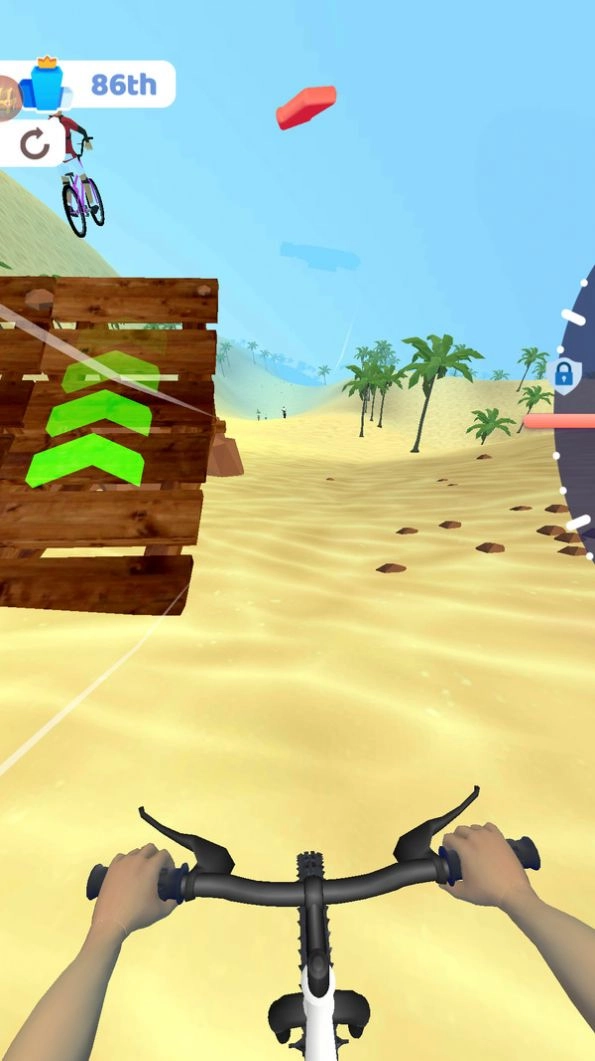 2、玩家必须驾驶自行车通过这些地形,收集金币和道具,并赢得比赛。