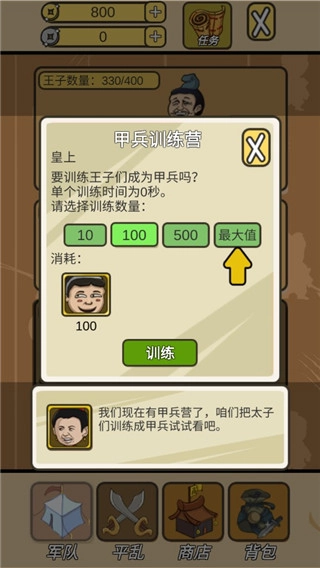 可以把王子训练成各种士兵,然后帮助皇上去平定天下。