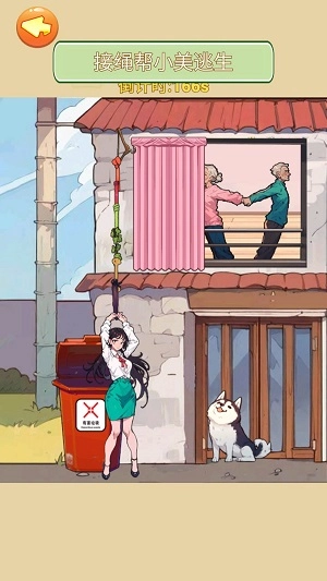 帮她安全下楼是一个有趣的休闲游戏。玩家需要在游戏中帮助角色顺利下楼,同时还要保密不被发现。随着关卡的深入,楼层的高度增加,难度也相应增加。找一根合适的绳子帮助角色下落。提供各种工具和上百个关卡,可以提高玩家的思维能力。仔细勘察现场,掌握楼层高度,解决烧脑难题,把握绳子长度,藏救,灵活运用技术。它提供了完整的提示和指导,绳子的承重能力是不一样的。久而久之,就要充分利用各种工具,多种多样的人物造型才能带来良好的视觉体验,灵活应对各种挑战才能有所收获。
