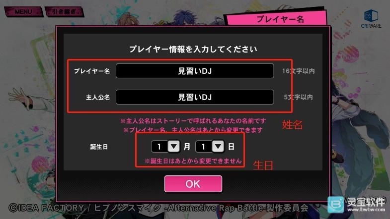 2、接着输入游戏名称和生日信息,需要注意的是,点击【ok】按钮后还要再次进行确认操作。