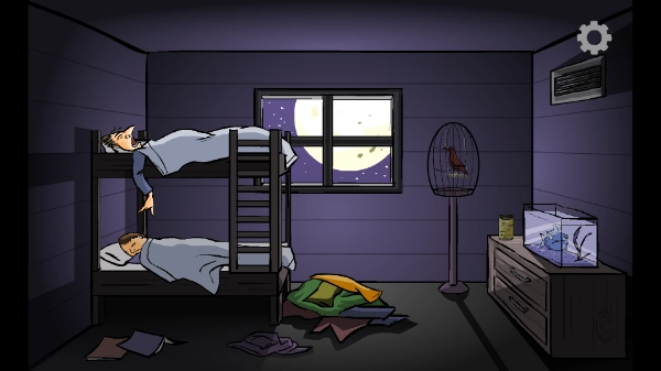 进入初始关卡后,首先需要触发悬挂的枝条使其下落,借助它向上移动;接着与蛙类互动使其消失,再操作树洞区域让鸟类飞离,之后点击鸟类原本停留的木质结构使其倾倒;随后启用钓竿装置,使其支架就位,再对水中的石块进行操作吸引鱼类靠近;然后让虫类附着到钓竿上,最后多次操作钓竿即可通关。