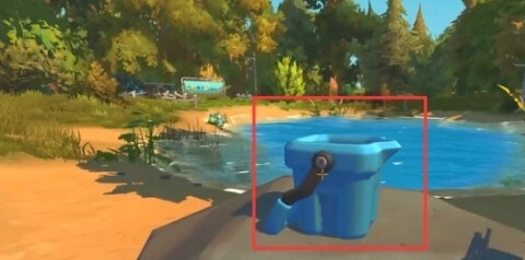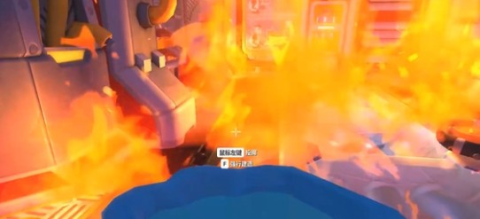 2、用水桶装满水后返回出生地,在出生地左侧找到一艘着火的飞船,随后用水桶将火扑灭。