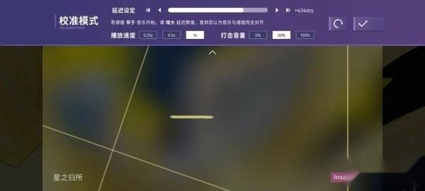 进入校准模式后,系统会自动播放一段谱面,这段谱面会根据延迟设定实时动态调整时间,玩家需要逐步调整延迟参数,让音乐节奏与谱面的显示完全对应起来。