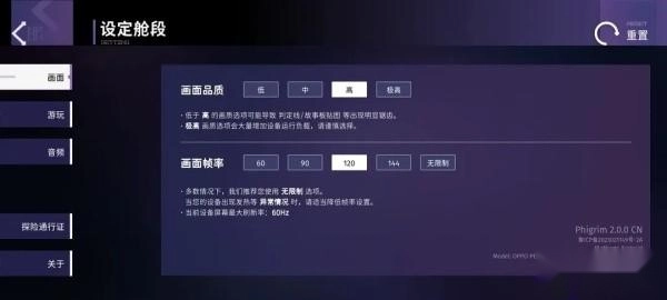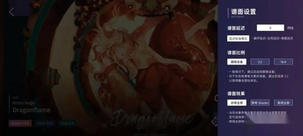和Phigros类似,像按键大小、背景亮度这类基础设置是两款游戏共有的,属于全局设置范畴;不过和Phigros不一样的是,由于谱面由不同机型、不同设备制作,对应的屏幕比例与延时存在差异。所以除了全局设置,还设有针对谱面的单独设置。下面将分别对这两种设置展开介绍。