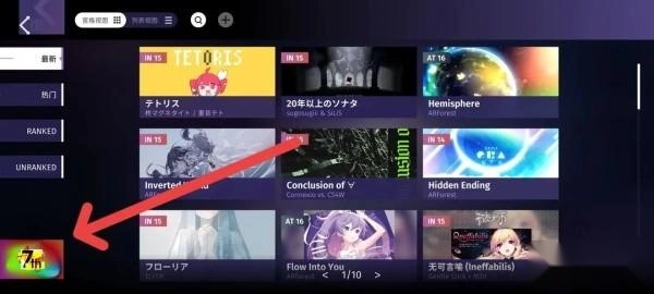 RANKED栏目可查看已通过审核的谱面,该栏目中的谱面会纳入RKS计算。