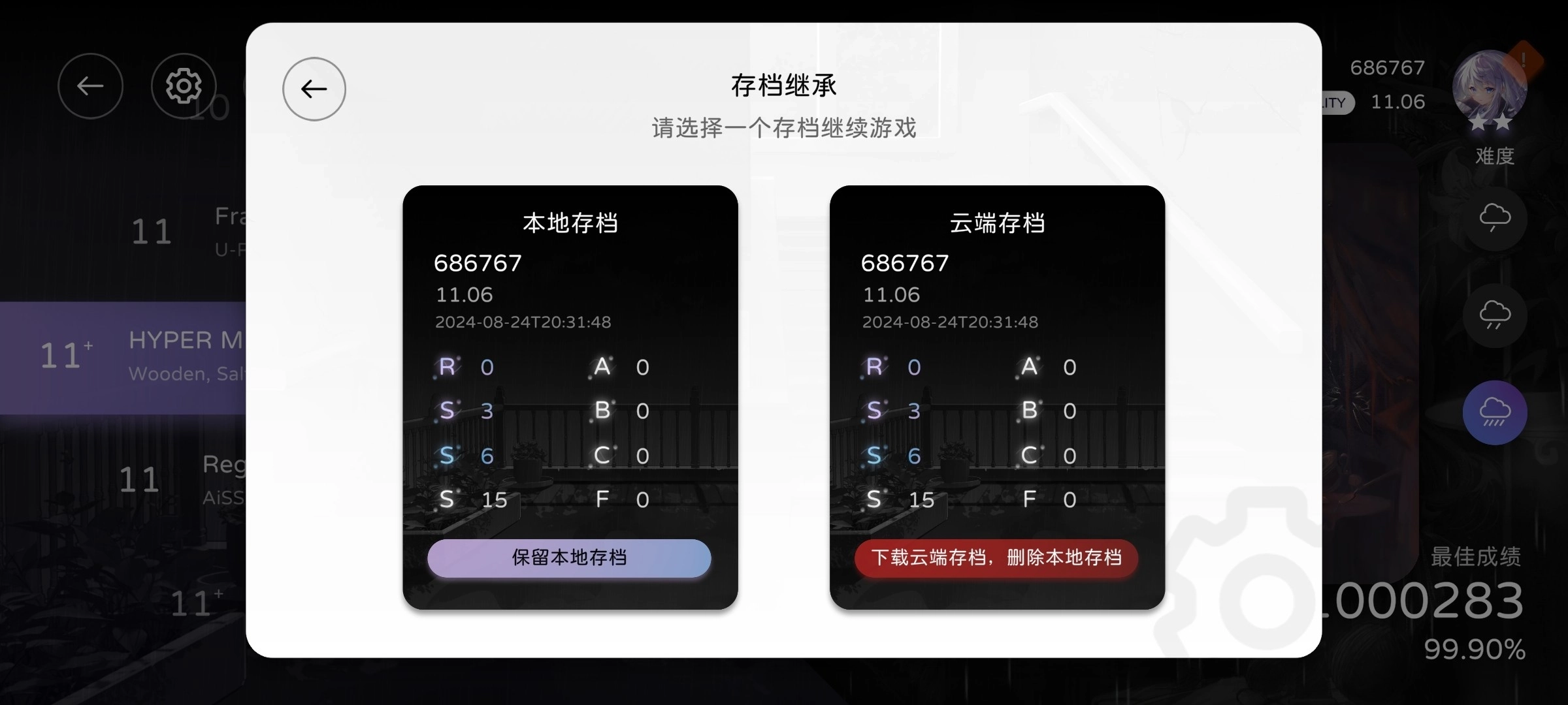 Milthm没有云存档功能,但玩家可以手动处理游戏数据的上传与继承——既能把本地存档传到云端,也能从云端获取存档继续游戏。不过在继承存档时,得先选定存档才能进入游戏,所以一定要仔细确认好要继承的存档,避免出现数据丢失的情况。