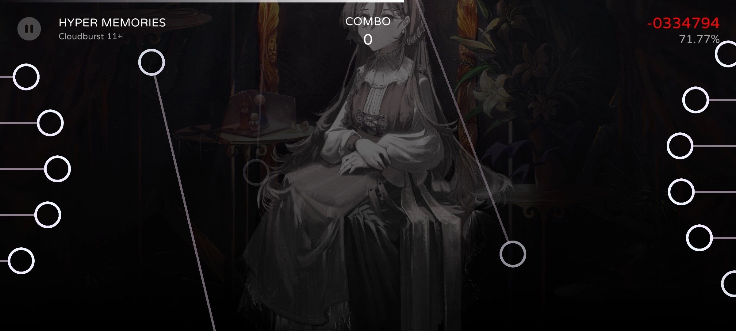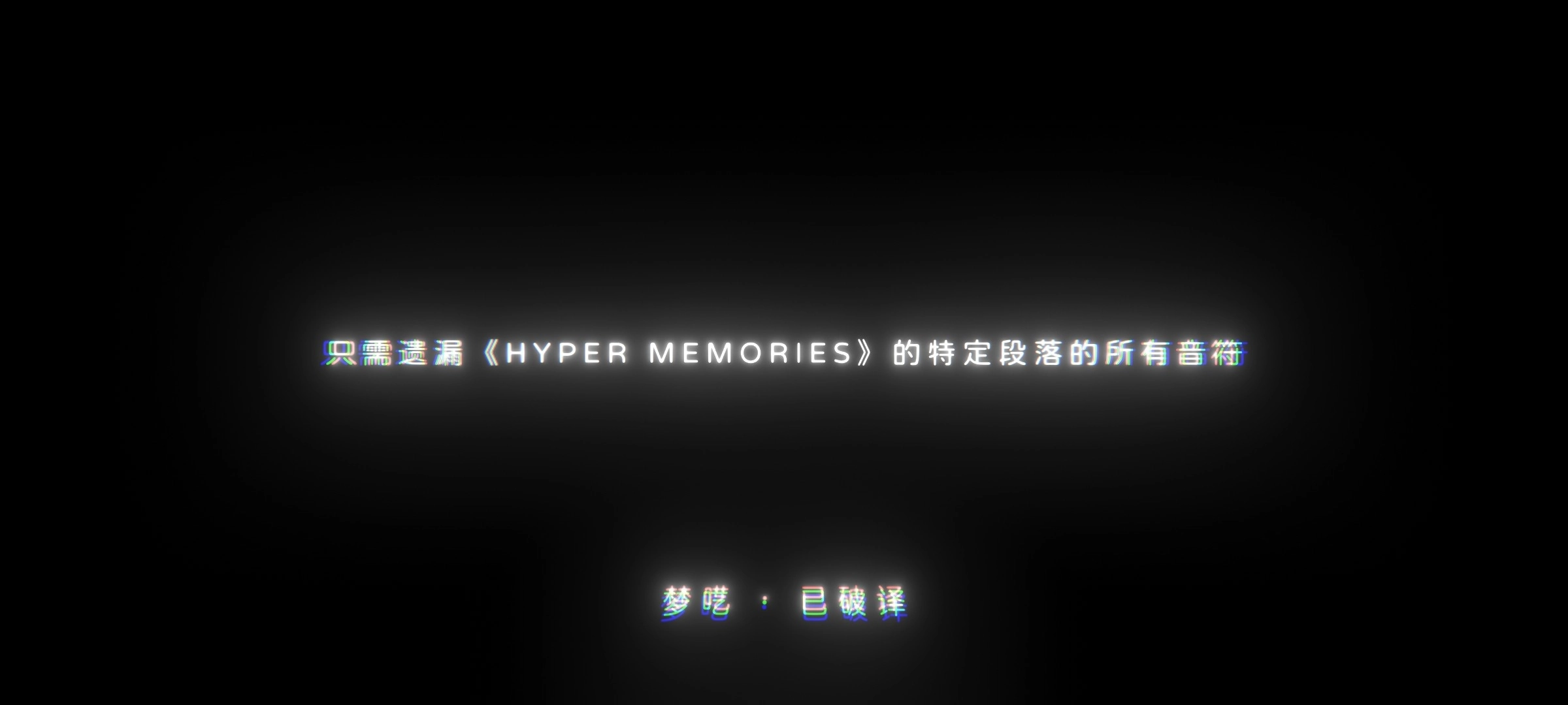 重新游玩《HYPERMEMORIES》时,当曲目进度条走到大约35%的位置,背景会出现黑白苏珊,而在这段黑白苏珊出现的过程中,我不会击打任何音符。
