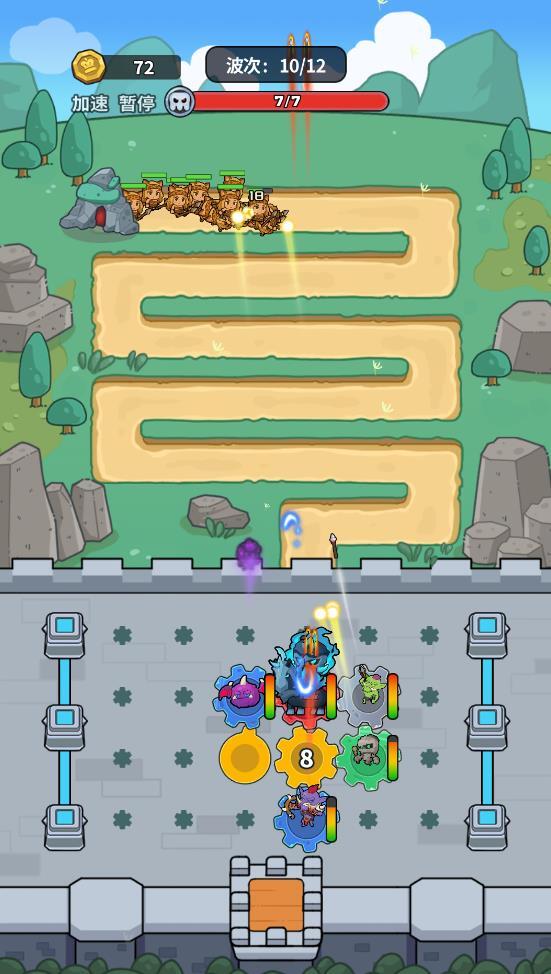 3、每一轮都会有各式各样的敌人冒出来攻击你的城堡,撑过的轮次越多,出现的敌人就越厉害。