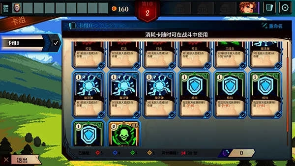 1、游戏内有着丰富的战斗卡牌,分为红、绿、蓝、黄、紫,分别对应攻击,魔法,辅助,道具,消耗。
