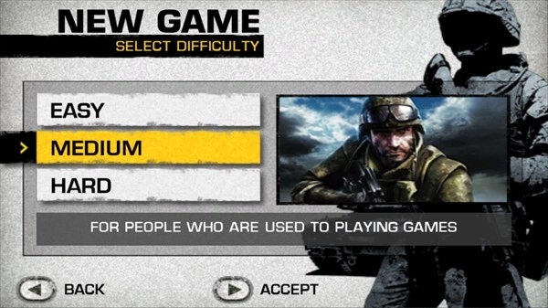 3、挑选对应的游戏难度,我选了中等,点击accept后就能开始游玩了。