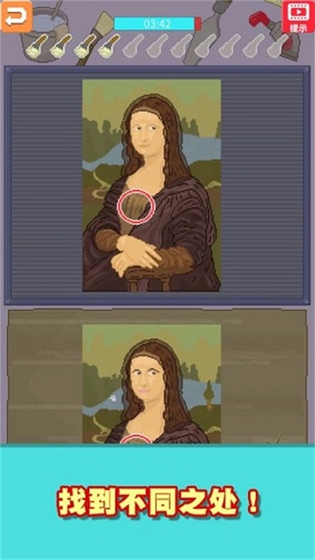 1、对比上下的美术品,点击不同之处进行修复。