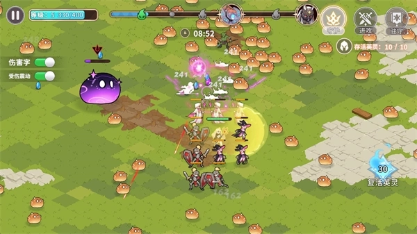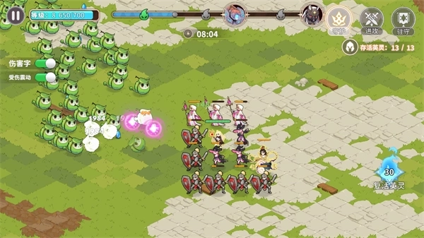 1、有许多英雄角色可以让你去选择来进行战斗,不同的兵种搭配会给你带来不一样的割草乐趣。