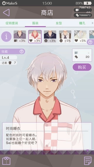 6、商店的主要功能是提供更多款式的衣服,每件衣服都能为你增加不同的好感度,这些衣服可以通过购买获得。