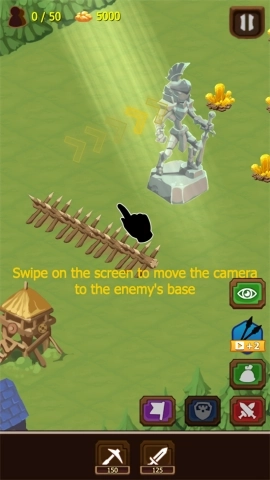随着矿产资源的持续补充,点击底部按钮即可训练士兵,后续可逐步解锁并添加不同兵种。训练完成后,点击“刀剑”图标就能发起进攻,最终目标是摧毁对方的雕像!