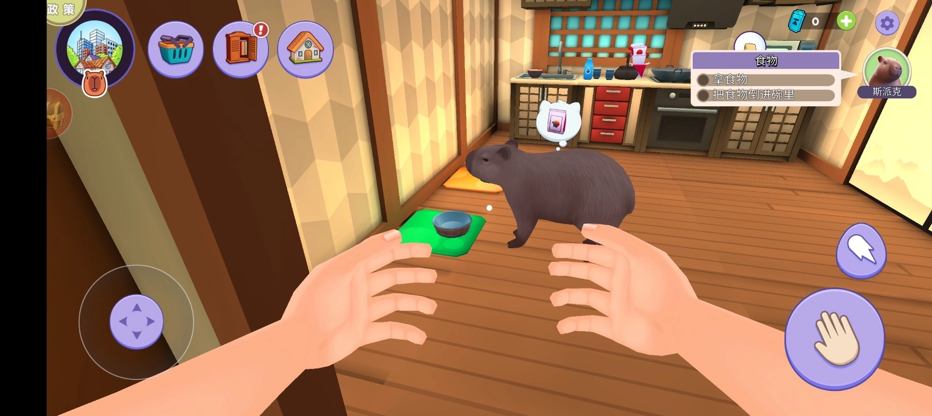 真实宠物模拟养成:核心围绕真实水豚(卡皮巴拉)的照料过程展开模拟,着重呈现喂食、清洁、互动等具体环节,为玩家带来沉浸式的逼真宠物养育体验。