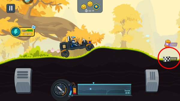 2、游戏界面右侧会显示一个数字和终点标志,这表示当前位置到终点的剩余路程。