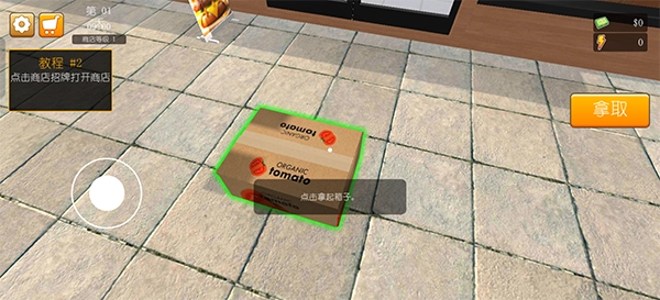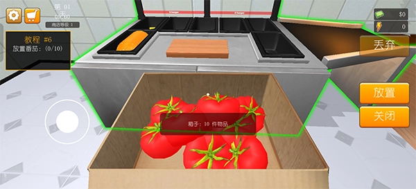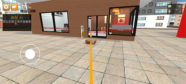 1、打开汉堡模拟器汉化版游戏后,先熟悉一下操作方式,接着按照提示找到箱子所在的位置。