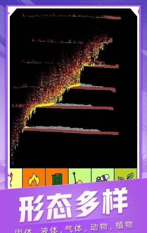 这是一款玩法简单又有趣的休闲游戏,你能看到天空中不断落下的各种流沙,还可以用不同方式搭建专属于自己的流沙世界。游戏里还会出现各种物质,它们之间能产生拟真的化学反应。这款精彩的游戏玩起来欢乐又开放,随时都能来体验美好的游戏玩法!