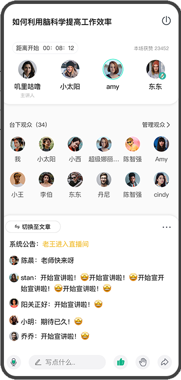 你可以获得更多新知识、新观点、新趋势、新技术;也可以在语音直播间与大咖进行圆桌讨论,进行思想碰撞;更可以与大咖建立连接,在圈子里深入学习,共同成长。