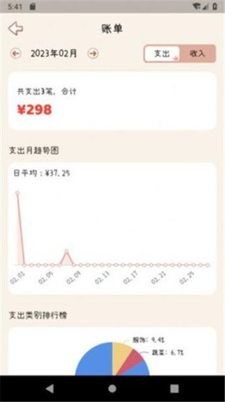 3、数据统计玩法:软件提供简单的数据统计功能,用户可以查看不同时间段的收支情况,如月度、季度、年度。通过分析统计数据,了解自己的消费趋势,合理规划收支。