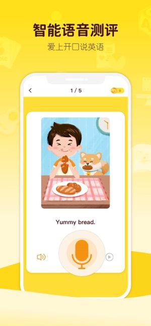 4、口语游戏玩法:进入口语模仿专区,选择喜欢的片段,点击跟读按钮,按照提示进行模仿,完成后查看系统给出的评分和评价,根据建议继续练习。