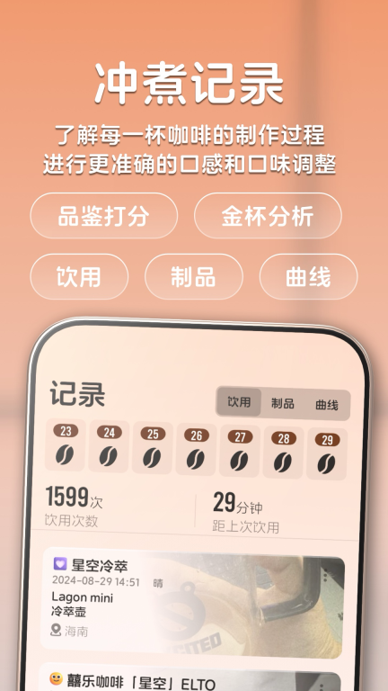 欢迎来到咖啡爱好者的秘密武器——“享咖小记”,您的个人专业咖啡助手。这不仅仅是一款应用程序,它是您的咖啡日记、统计专家和智能助手,都在您口袋中的精品。我们的目标是实现咖啡从豆到杯的每一步完美掌握。