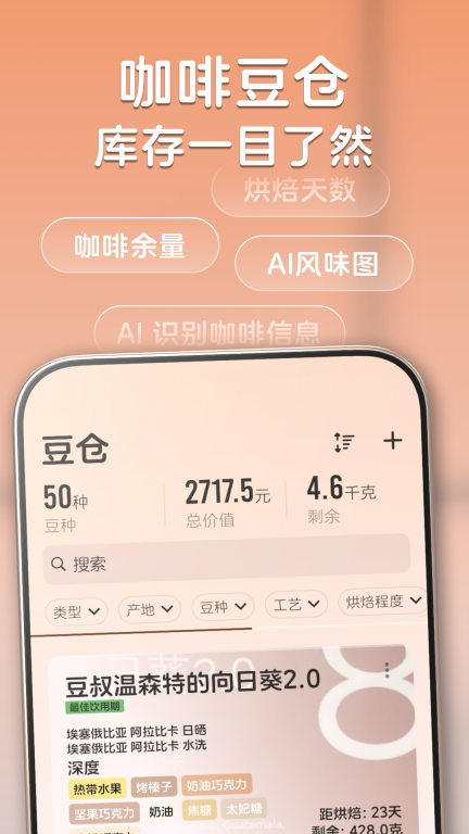 • 高效保鲜: 标记饮用期和实时监控余量,提醒保持咖啡鲜度。