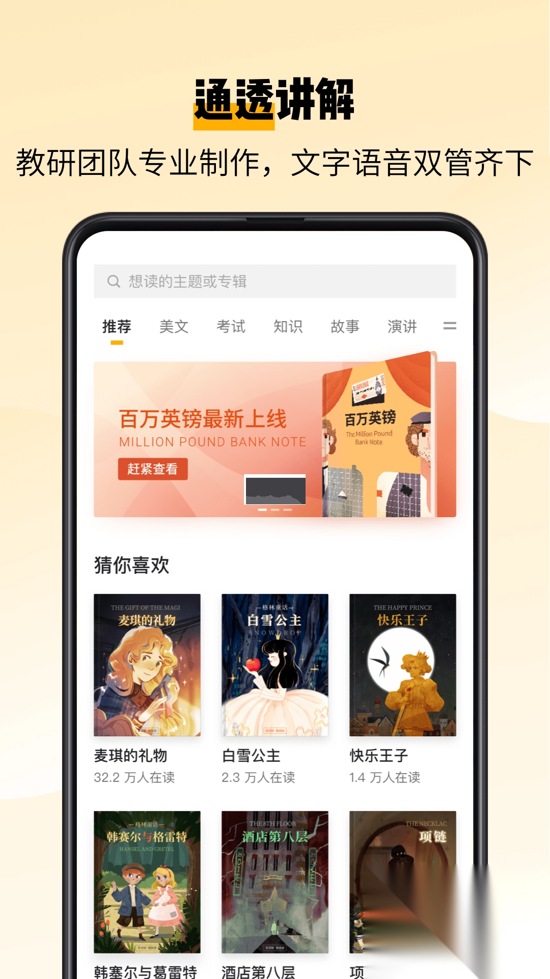 从初中程度到专业英语,多种难度任你自由挑选,强大算法为每一位学习者量身打造。