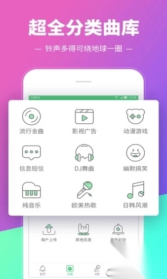 海量铃声资源,不用费力制作,点击即可欣赏,一键完成设置。