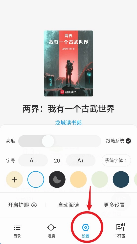 3、在阅读界面点击屏幕中央,调出菜单以调整字体、背景、翻页方式等设置。