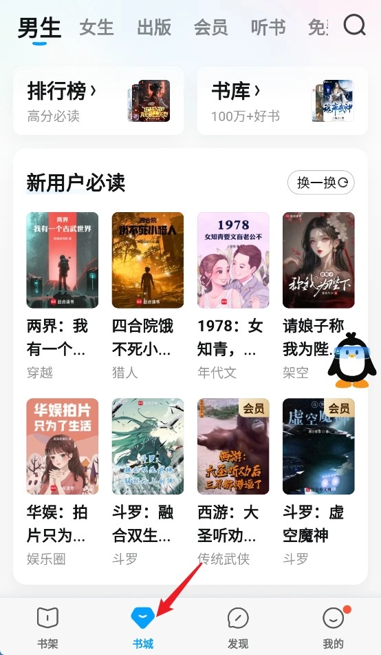 1. 开启QQ阅读APP,首页会呈现推荐书籍,你既能够依据分类进行浏览,也可以通过搜索关键词来查找。