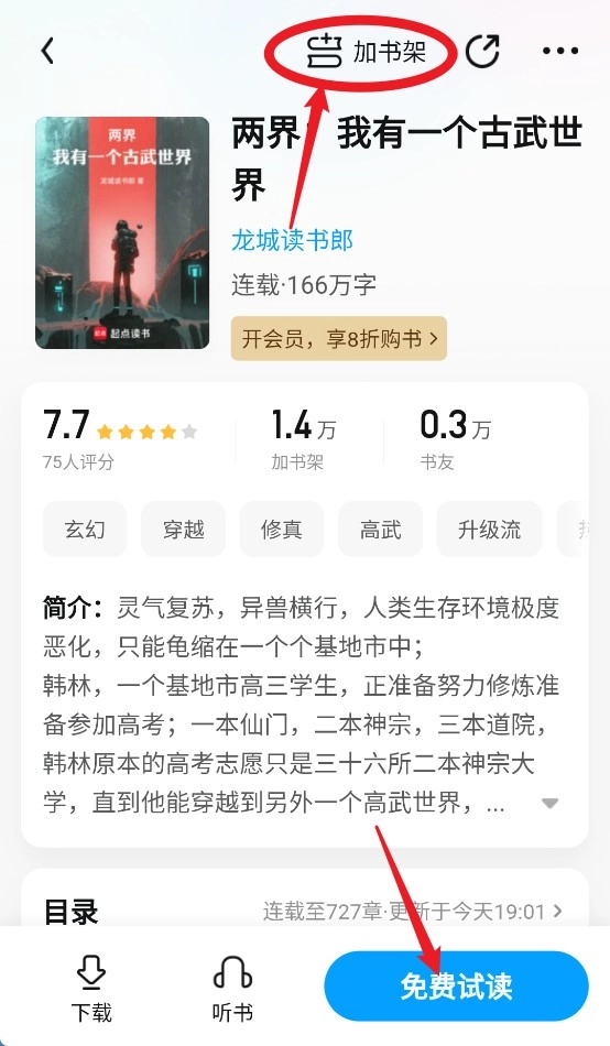 2、点击心仪书籍进入详情页,选择“立即阅读”或“加入书架”保存至个人书架。