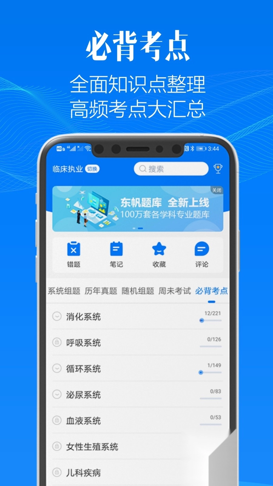 东帆题库,专为医学生和社会医师考试打造的题库软件。在这里,你能刷到各科目历年真题,还设有模拟考试,助你全面了解自身能力。不仅如此,东帆题库内有各大学校的名师讲堂,时常推出免费公开课等你来听。要是你感兴趣,就赶紧下载体验吧!