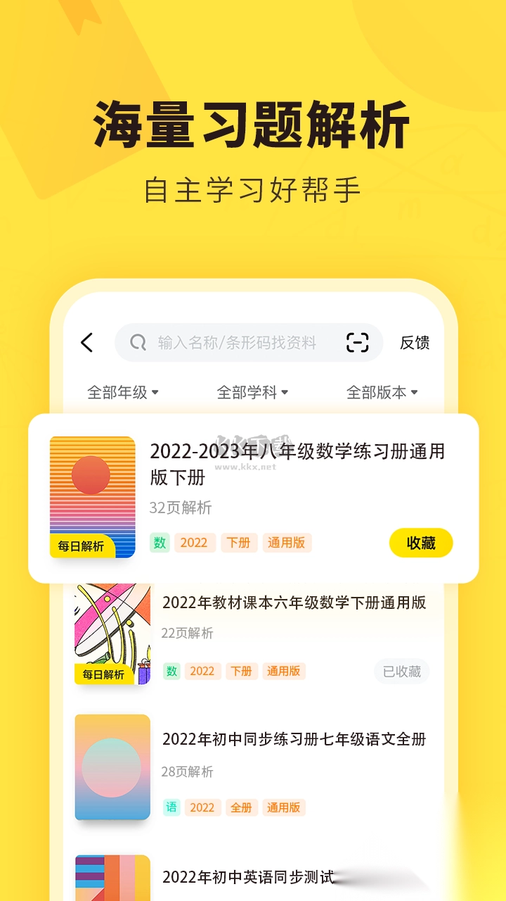 2、快速查找:支持扫描条形码查找,也能按书名、年级、学科、版本等方式搜索,搜索方式灵活多样。