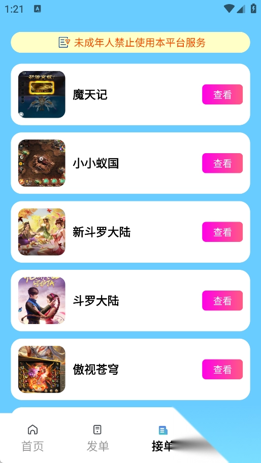 3、于接单页面,能够挑选特定游戏,随后完成接单操作即可。