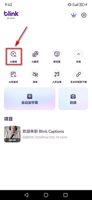 1、进入软件后可以看到很多功能,我们可以选择【AI编辑】来编辑视频。