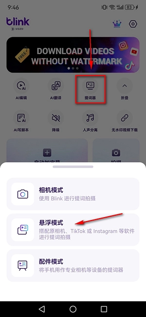3、点击【提词器】来选择各种不同的显示模式。