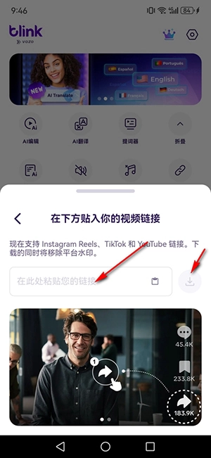 5、找到并点击【视频无水印下载】选项,接着在指定位置输入tiktok等平台的视频链接,最后点击下载按钮,就能成功下载无水印视频。