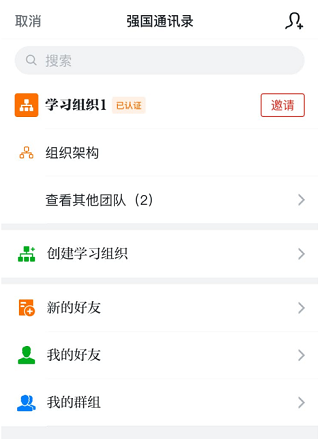 2、强国通讯录-已认证学习组织右侧“管理”-邀请下级组织认证