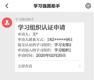 4、接收到上级学习组织管理员审批通过的消息通知,就表示认证成功