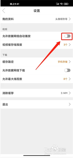 进入设置界面,点击【允许数据网络自动播放】右侧按钮关闭。