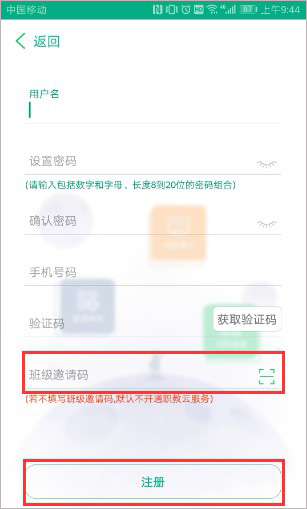 注:学生若不填写【班级邀请码】或不扫描【班级二维码】则默认不开通职教云服务