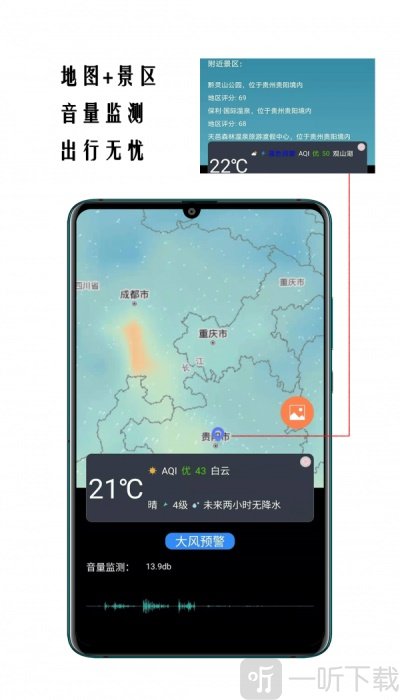1这款天气预报应用提供了非常全面的信息,包括温度、风向、天气状况、气压、空气质量、湿度以及PM2.5指数等,几乎涵盖了日常生活中所需的所有气象数据。用户可以轻松掌握每日的天气变化趋势,为出行和日常生活做出更合理的安排。其界面友好且信息准确,是人们日常生活中不可或缺的好帮手。